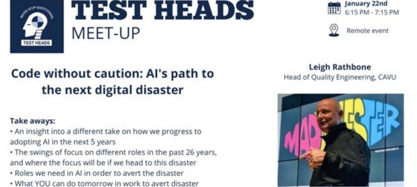 "TestHeads is back with a thought-provoking remote talk with Leigh Rathbone, Head of Quality Engineering at CAVU. Leigh will share some controversial ideas that are sure to spark lively discussion!"